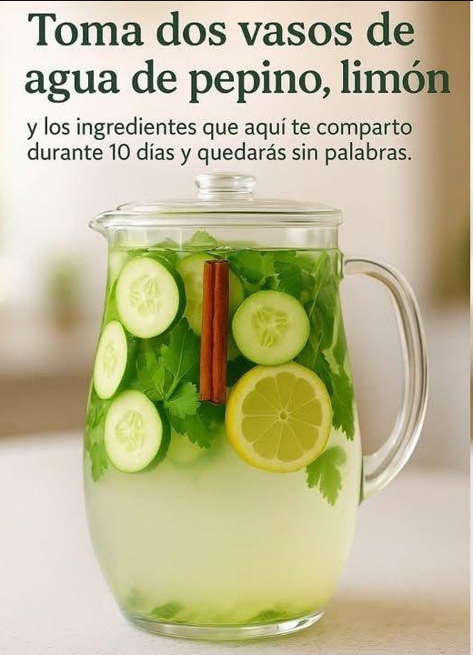 Gracias al pepino y al limón, esta bebida ayuda a eliminar toxinas acumuladas, facilitando la función del hígado y los riñones.