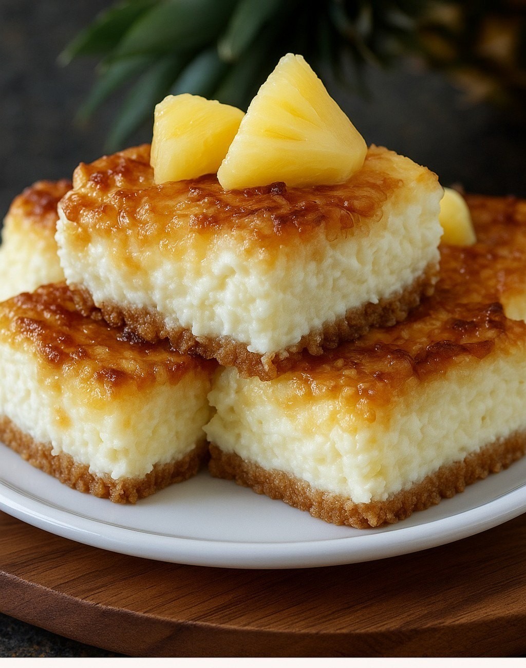 Deléitate con los sabores tropicales de piña y coco, combinados con un cremoso cheesecake, todo sobre una base de galleta graham con mantequilla. Estas barras fáciles de preparar son perfectas para reuniones de verano, comidas compartidas o un dulce capricho en cualquier época del año.
