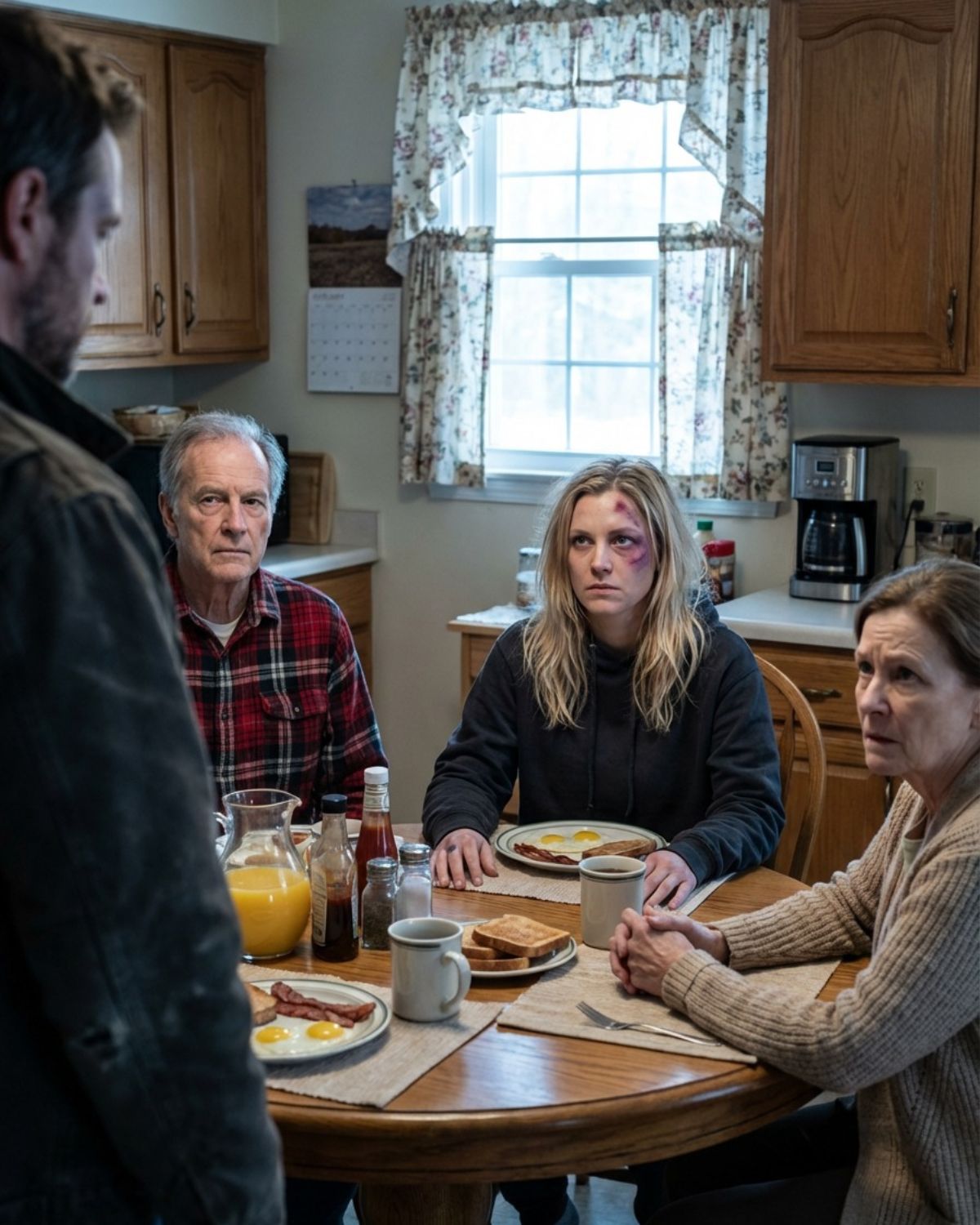 “¿Qué se supone que es esto?”, pregunta Evan, con un tono ya defensivo mientras nos mira a los dos. Aaron no se pone de pie, lo cual es deliberado, y en cambio dice con calma: “Parece desayuno, pero la honestidad probablemente ayudaría más ahora mismo”.