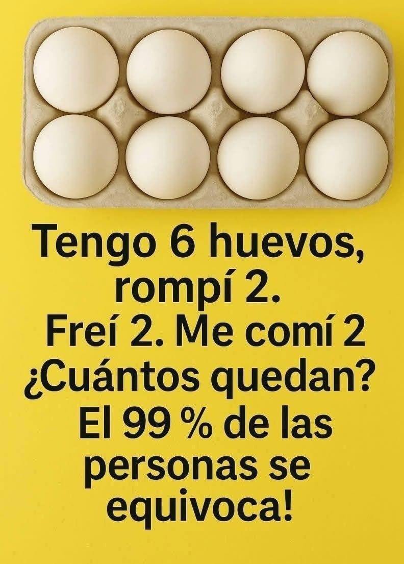 ¡Y efectivamente! La mayoría de los usuarios responde mal sin pensarlo dos veces. Algunos dicen que quedan 0 huevos, otros que quedan 4, otros 2… pero ¿cuál es la respuesta correcta?
