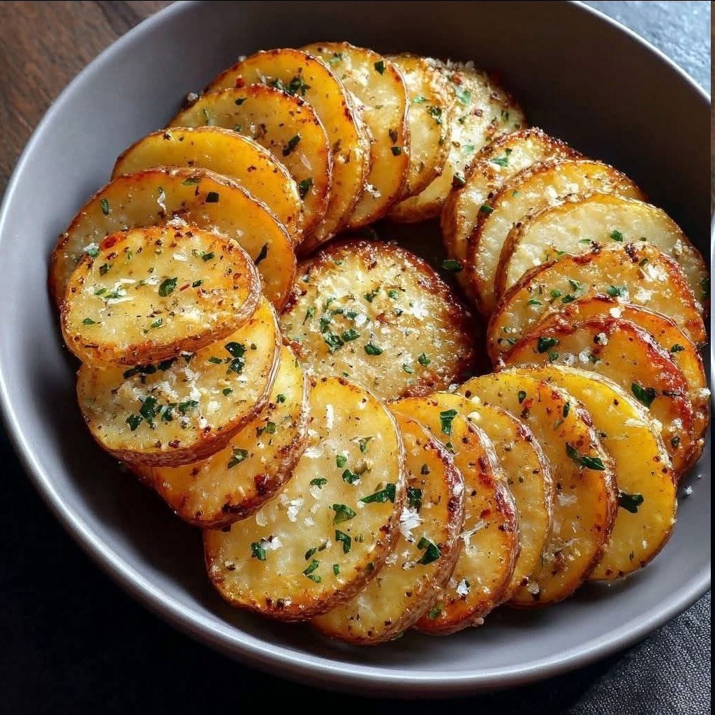 Estas rodajas crujientes y doradas son perfectas como guarnición o refrigerio y ofrecen un equilibrio satisfactorio entre textura y suavidad.