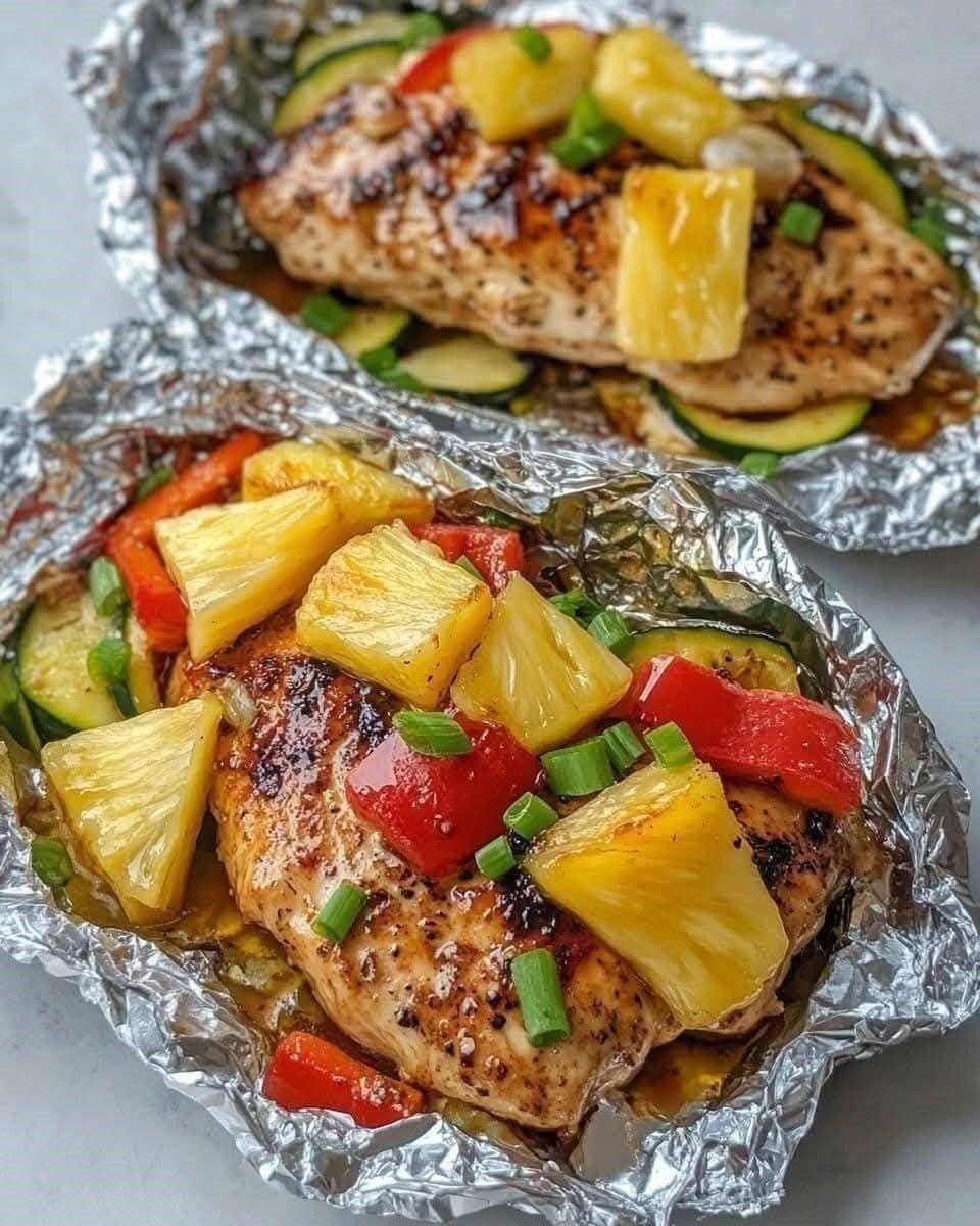 Paquetes de Papel de Aluminio de Pollo Teriyaki y Piña: Receta Completa, Saludable y Llena de Sabor