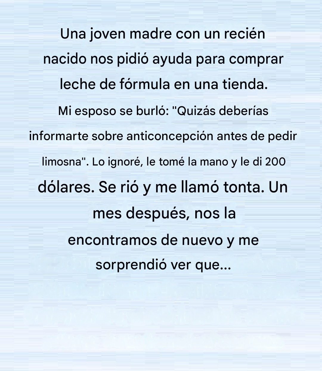 —Lo siento mucho —susurró con voz temblorosa—. Solo necesito ayuda para comprar comida para bebé. Solo una lata. Algún día la pasaré. Lo prometo.