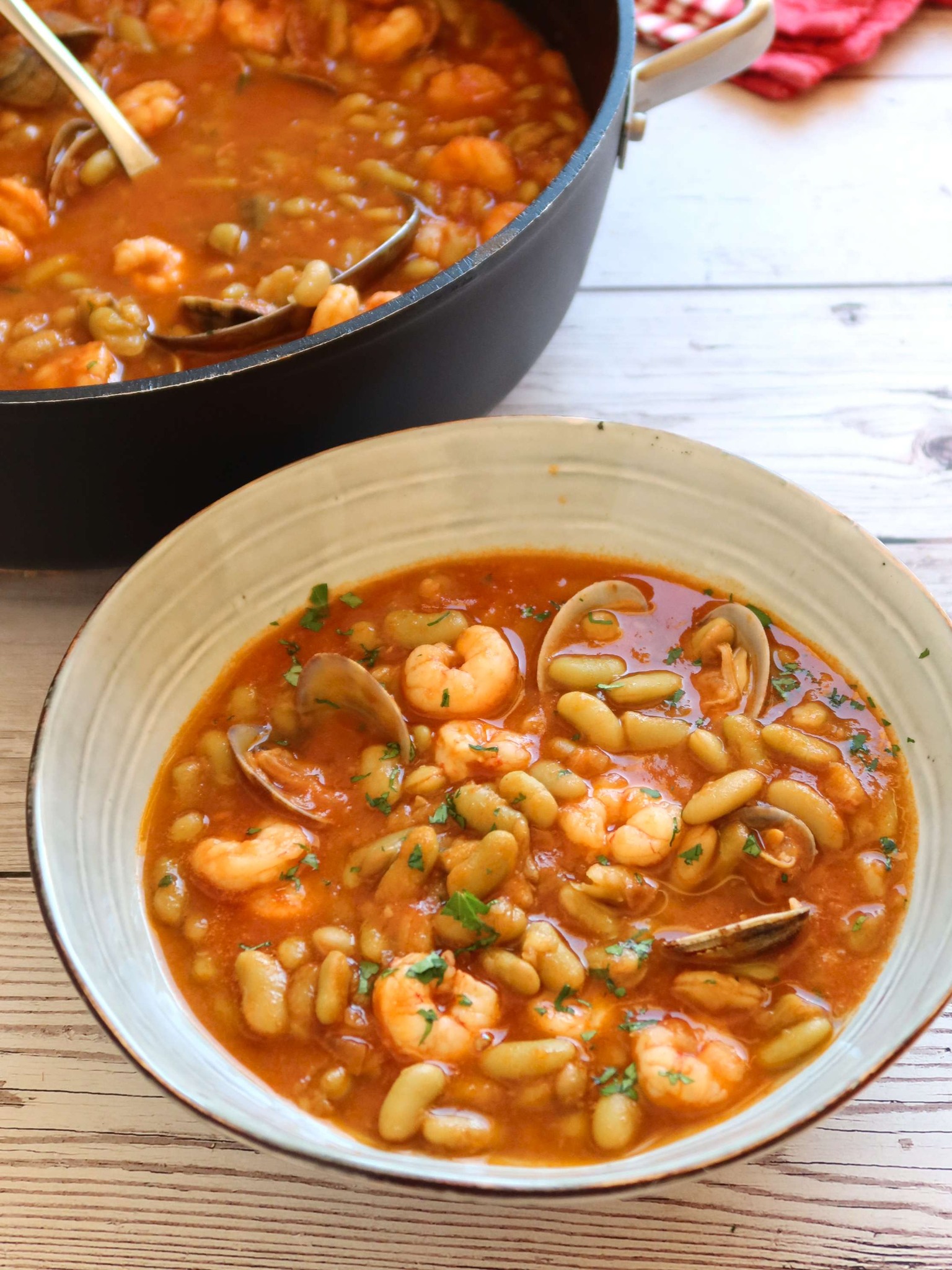 Las Verdinas con gambas y almejas es un plato delicioso que combina sabores del mar con la suavidad de las legumbres. Este guiso, típico de la cocina asturiana, destaca por su textura cremosa y su sabor intenso. Al utilizar verdinas en conserva, te ahorras el tiempo de tenerlas a remojo. No puede resultar más fácil preparar este plato lleno de sabor que hará las delicias de cualquier paladar. Al llevar gambas y almejas, es un plato muy festivo perfecto para comer de cuchara un día festivo.